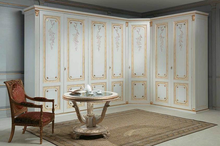 Dressing room from Italian manufacturer Vimercati. The case is made of natural wood, the surface is treated with varnish from the range of the factory. D?cor - gilding. The model is decorated with inlay. The doors are hinged. Great fit in a classic interior. Colors: white, Golden.