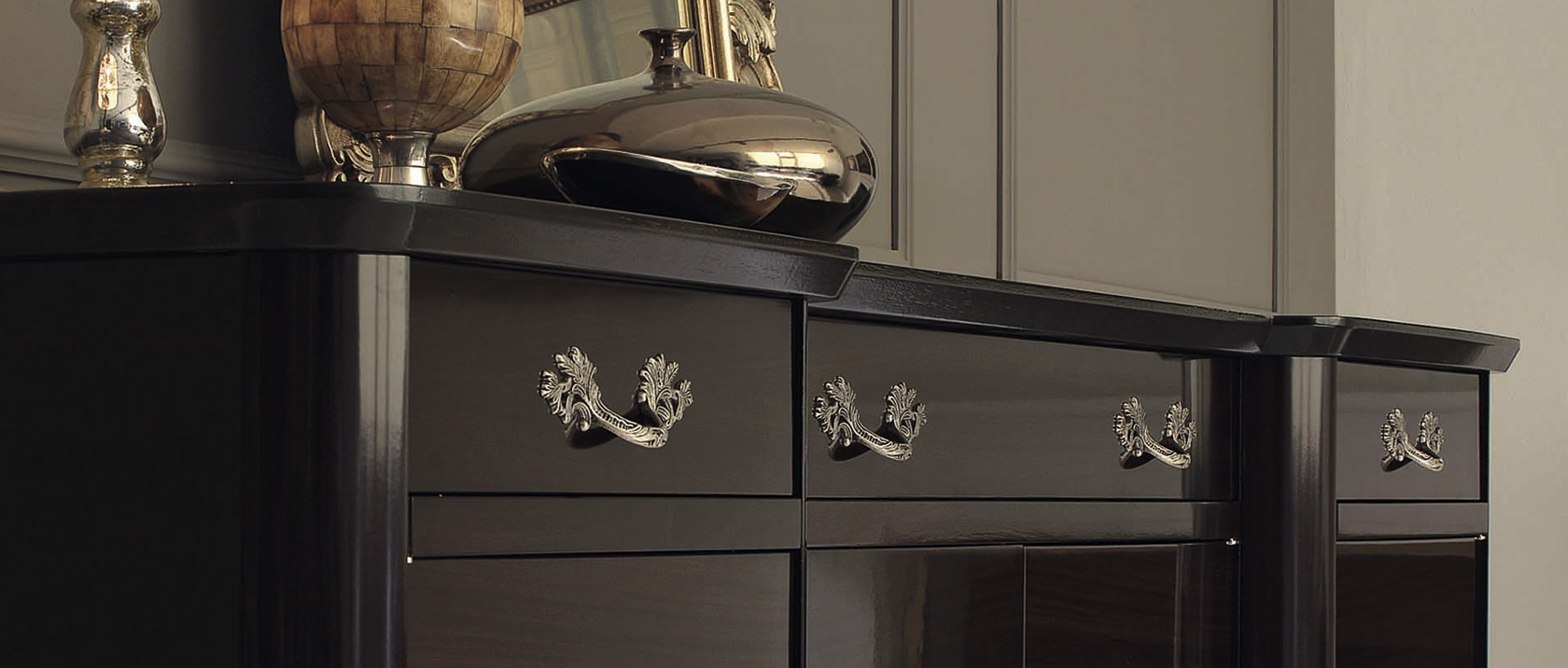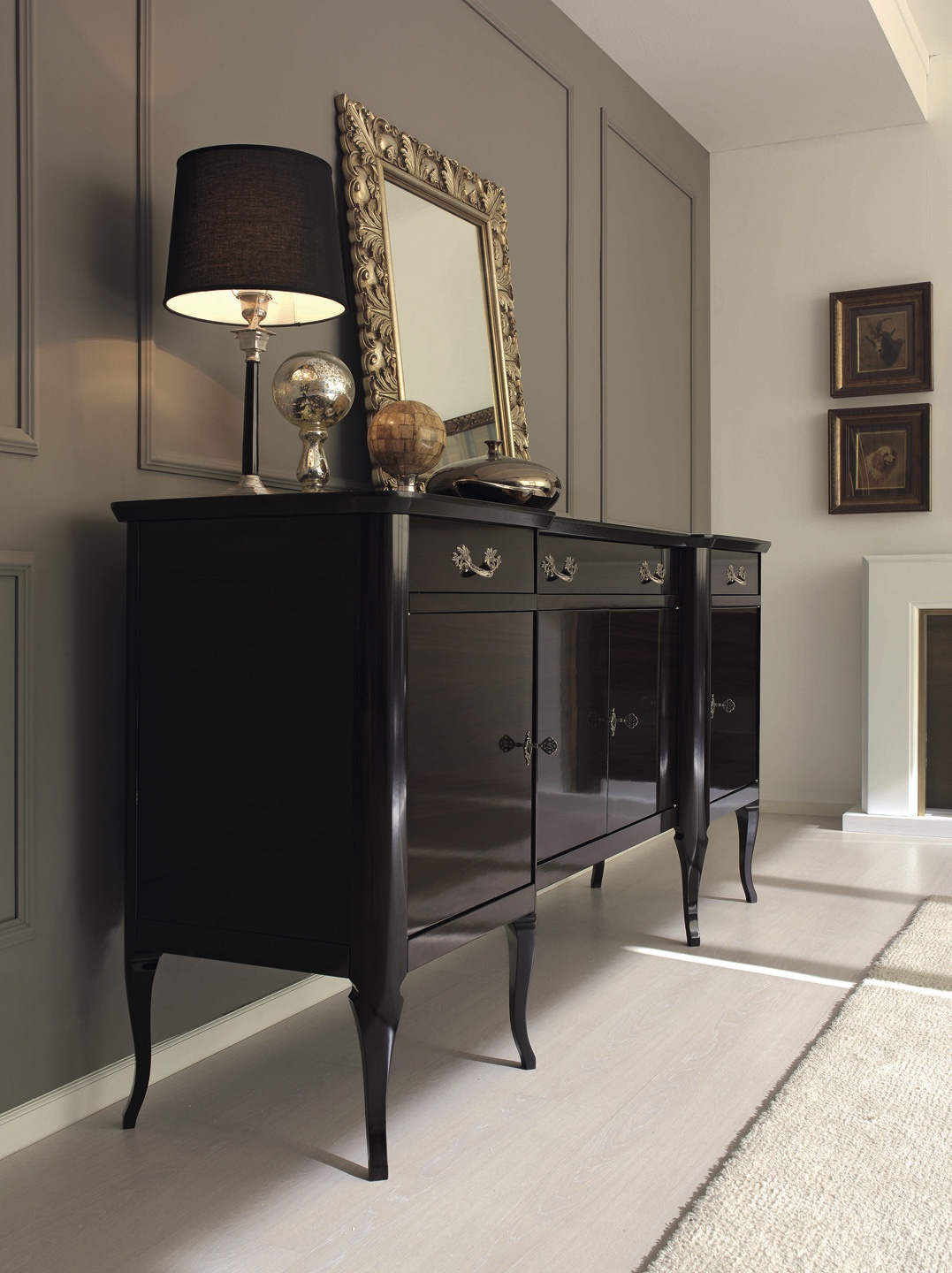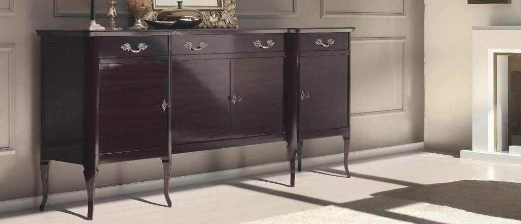 | Description: | The Brera sideboard by Italian producer Galimberti Nino. The model is made from solid wood, finished rosewood Santos palissandro santos. Equipped with three drawers of different depths and closed sections for storage. Handle ANTIQUARIATO patinated gold. |