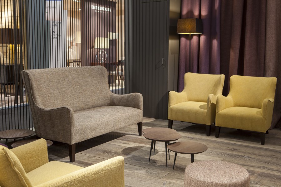 Alton loveseat from Belgian manufacturer Mariescorner. Frame, legs - natural wood. Upholstery - textiles. The model is made in modern style. Colours in stock.