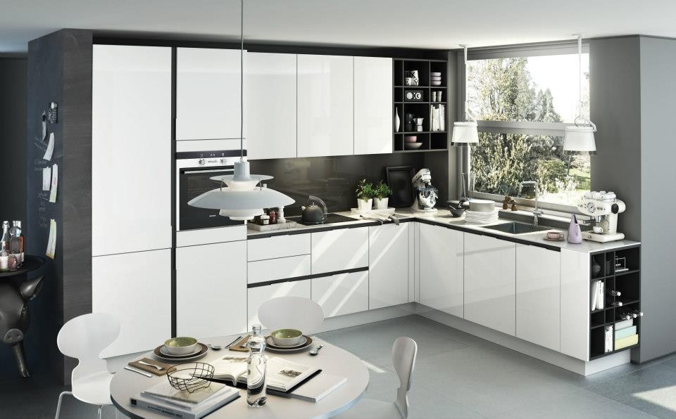Kitchen set S3, from German manufacturer SieMatic. Finish - glossy lacquer, from the company portfolio. The angular model is made in a modern style. Colors - in stock. Cooktop made of glass ceramic. Oven built-in high system. Sliding elements open without accessories.