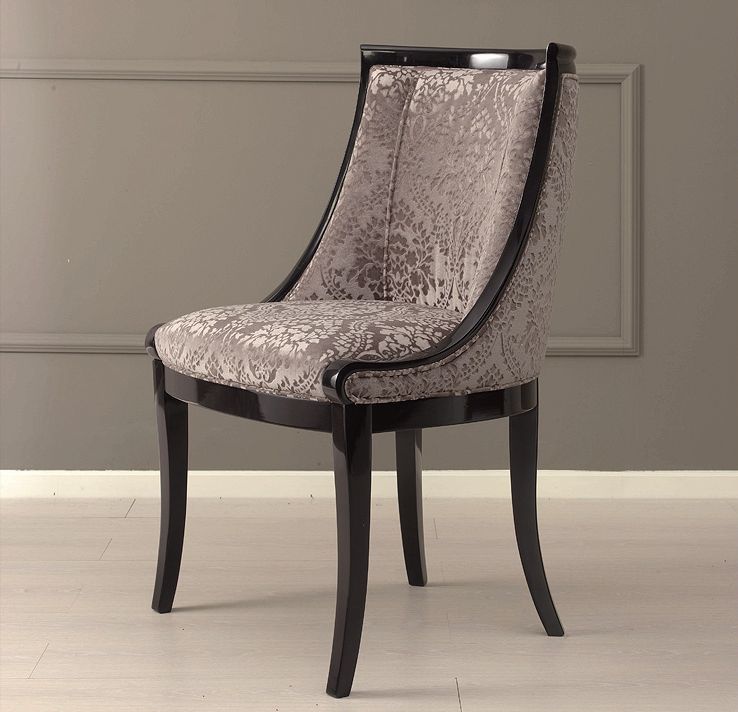 The Sophia chair from Italian producer Galimberti Nino. The frame is made from solid ash in textile or leather upholstery from a range of campaigns. A great choice for the living room or dining room in art Deco style. Product color black.