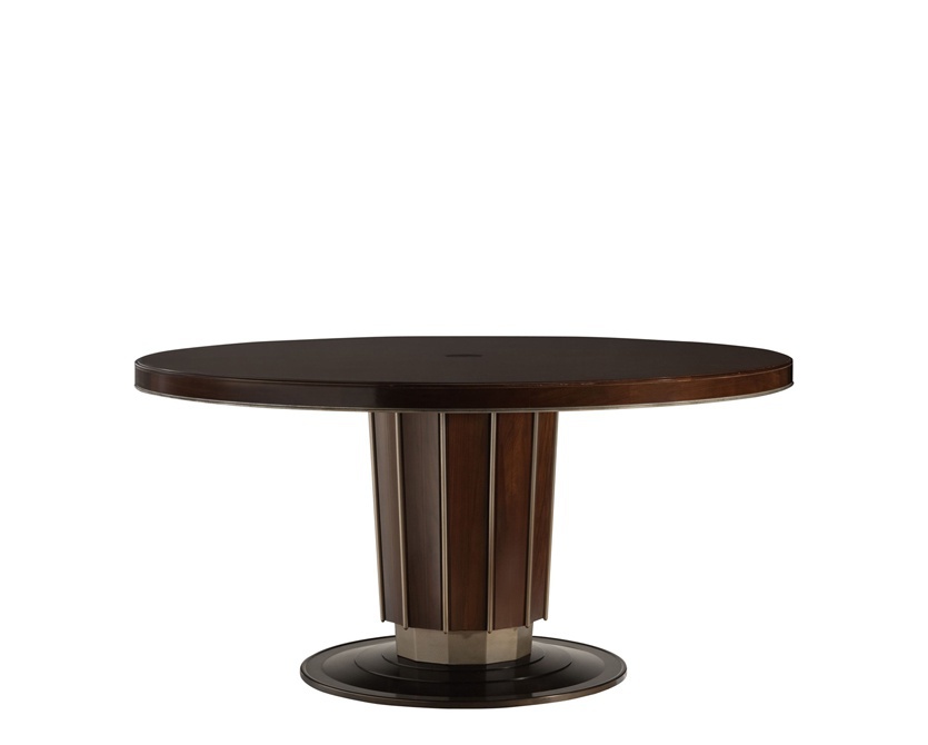 The table Sutton Round Dining Table from American manufacturer Baker. Frame products made of wood of walnut. The surface is treated with a special compound that retains the natural color of wood and prevents from damage. The model is rotating on the stem. Color in stock.