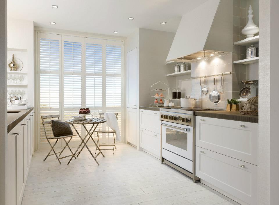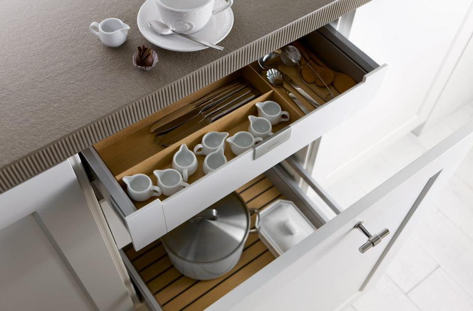 Kitchen SE, from German manufacturer SieMatic. The table top is made of stone. Furniturf - metal. The working surface illuminated by the LEDs. Set is made in a classic style. Finish - Matt lacquer white.