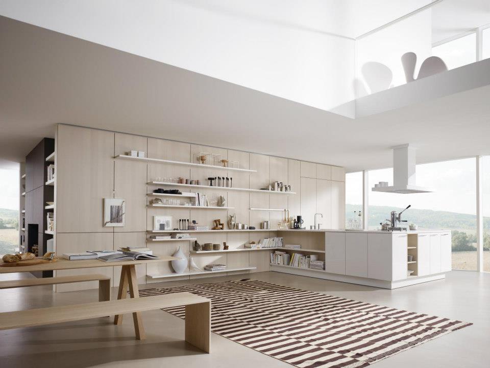SE 5005 kitchen cabinets from German manufacturer SieMatic. The model combines open and closed sections. Kitchen smoothly into the living area, living ele. Facades - gloss varnish. Colors beige and white. Fittings - metal. Set is made in modern style.