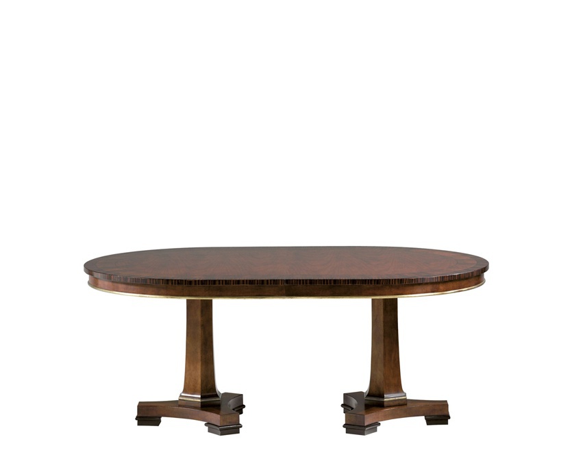 Desk Double Pedestal Dining Table by American manufacturer Baker. Model with oval top and carved legs. Material - solid wood. Finish - gloss lacquer. Designed in art Deco style.