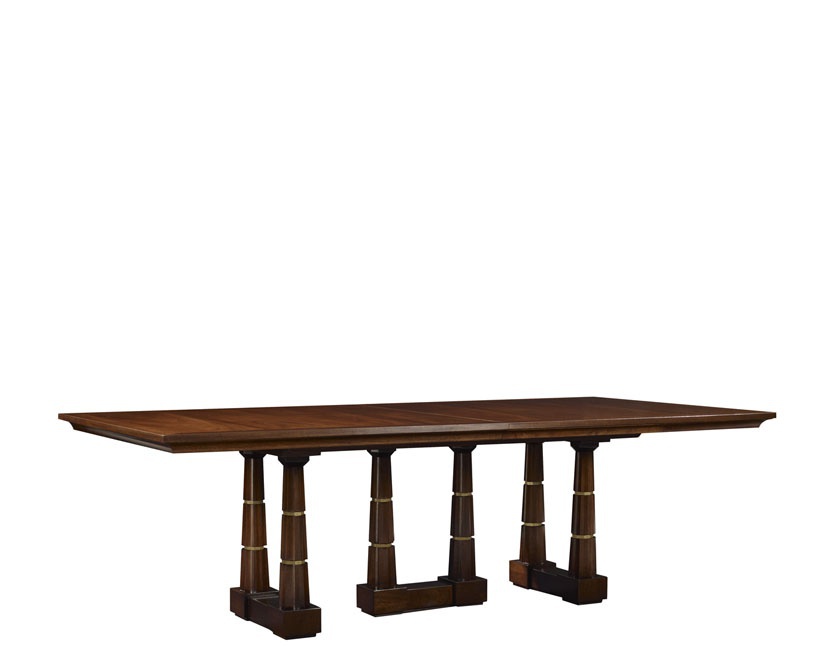 Table Column Dining Table from the American manufacturer Baker. Made of mahogany wood. The frame and legs are decorated with ornaments of Golden colour. Table top varnished. The wood is covered with a transparent composition. Color in stock.