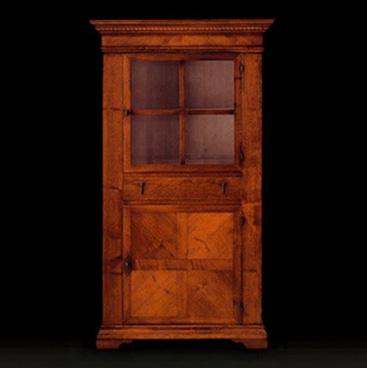 The buffet Antiquariato, from the Italian manufacturer Lando. The frame is made from solid wood. Finishing varnish from the company portfolio. The model consists of two sections. One with a door made of glass, the other of wood.