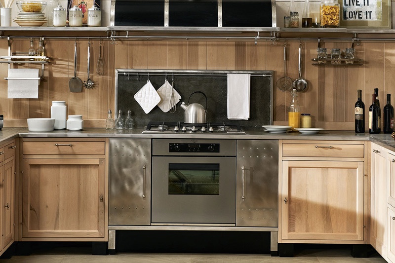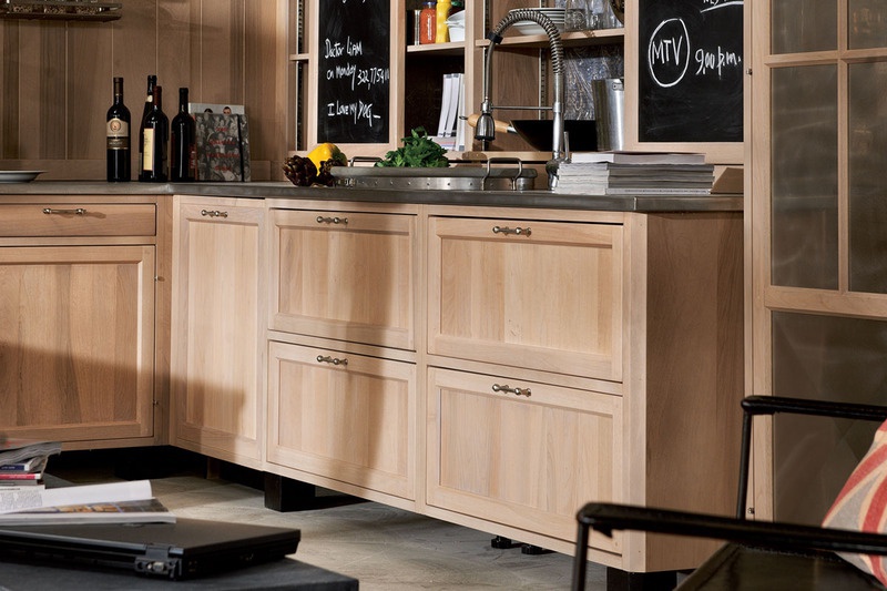 Set for the kitchen Panamera from the Italian manufacturer Marchi Group. Corner model. Includes a number of hinged drawers, cupboard and integrated fridge. Stool and natural stone. Accessories metal. Finish to be selected from a catalog company.