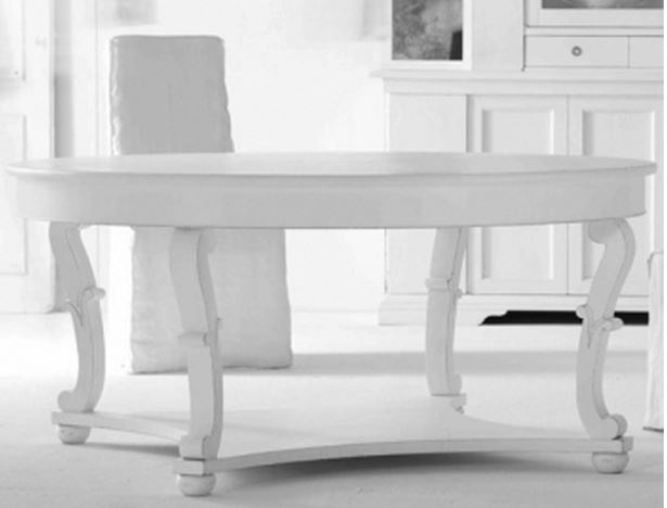Dining table from the Nuova Falegnameria collection from Lando Italian manufacturer. The frame is made of wood. Finish - Matt lacquer white. Legs decorated with carved elements and rests on a shelf with legs in the form of balls. Table executed in classical style.