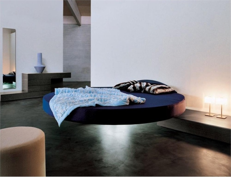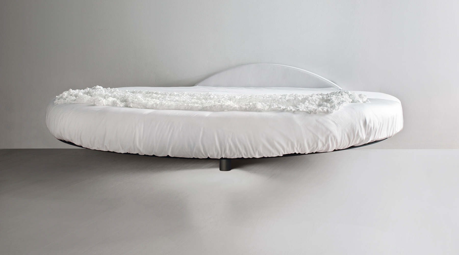 Round bed Fluttua C by Italian manufacturer LAGO. The world's first suspended bed from designer Daniele Lago, which has revolutionized the design of the bedroom and made the reality of the flights in dreams and in reality. Defying the forces of gravity, the bed is supported by a single leg, adjustable for height. The fastening system to the wall ensures complete safety. The frame is made of metal, the mattress of ecological cotton. Additional lighting under the frame makes the atmosphere in the room even more magical and turns it into the bedroom of Your dreams. To give the bed a personality, you can choose a headboard made of glass or upholstered in ecological leather. Available also wooden headboard Wildwood, which creates a particularly relaxed atmosphere thanks to the warm texture of wood. Patented product design for bedrooms and children's rooms. Colours in stock.