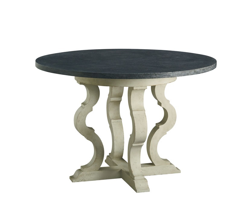 Table Malabar Breakfast Table from the American manufacturer Baker. The frame is made from solid wood. Model of circular form on a carved base, handmade with serpentinejarrahdale legs. Vintage design emerged over a hundred years ago in the Malabar coast of India. Color and finish according to the manufacturer's catalogue.