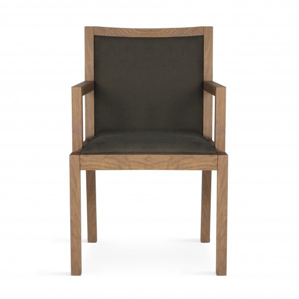 The Belmont chair from the Belgian manufacturer Mariescorner. The frame and legs are made of wood of walnut. Upholstery - textiles. The model with armrests is designed in modern style. Colours in stock.