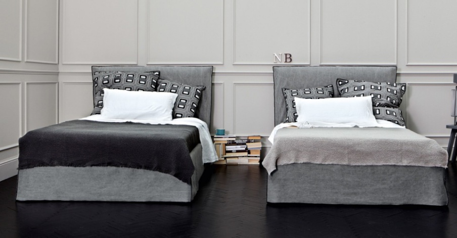 Single bed Ghost 80 E, from Italian manufacturer Gervasoni. The frame is made of wood. Upholstery high headboard - textiles. A wonderful choice for the bedroom in modern style. Colours in stock. The size specified for the mattress 160 x 200 cm. This model is also available for mattresses: 90x200, 120x200, 140x200, 180x200, 200x200.