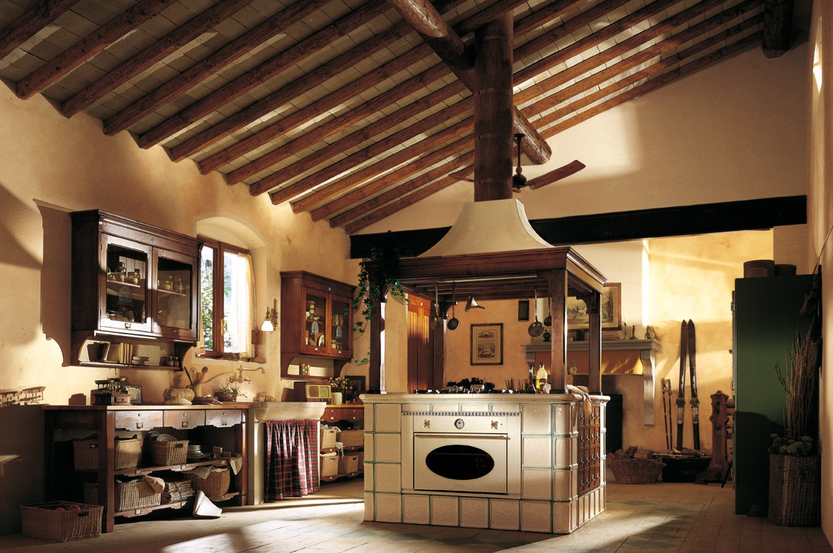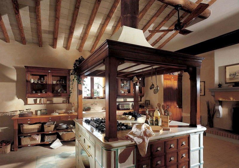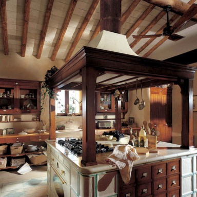 Set for the kitchen Hemingway by Italian manufacturer Marchi Group. The model with the island. Material - solid wood. The table top is covered with artificial stone. Accessories metal. The surface is covered with varnish. Colors in the catalog of the company.