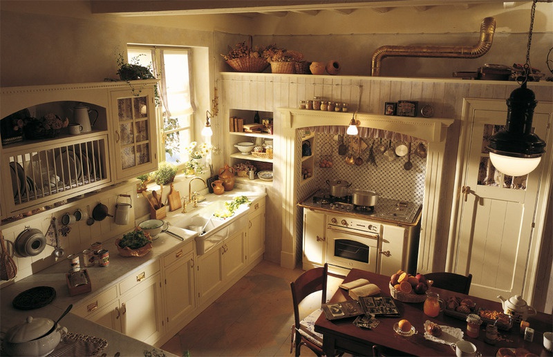 Set for the kitchen Old England from the Italian manufacturer Marchi Group. The angular model is made in a modern style. The body is made of solid wood. Sash glazed and deaf. Countertop made of artificial stone. Handles and metal adjustable legs.