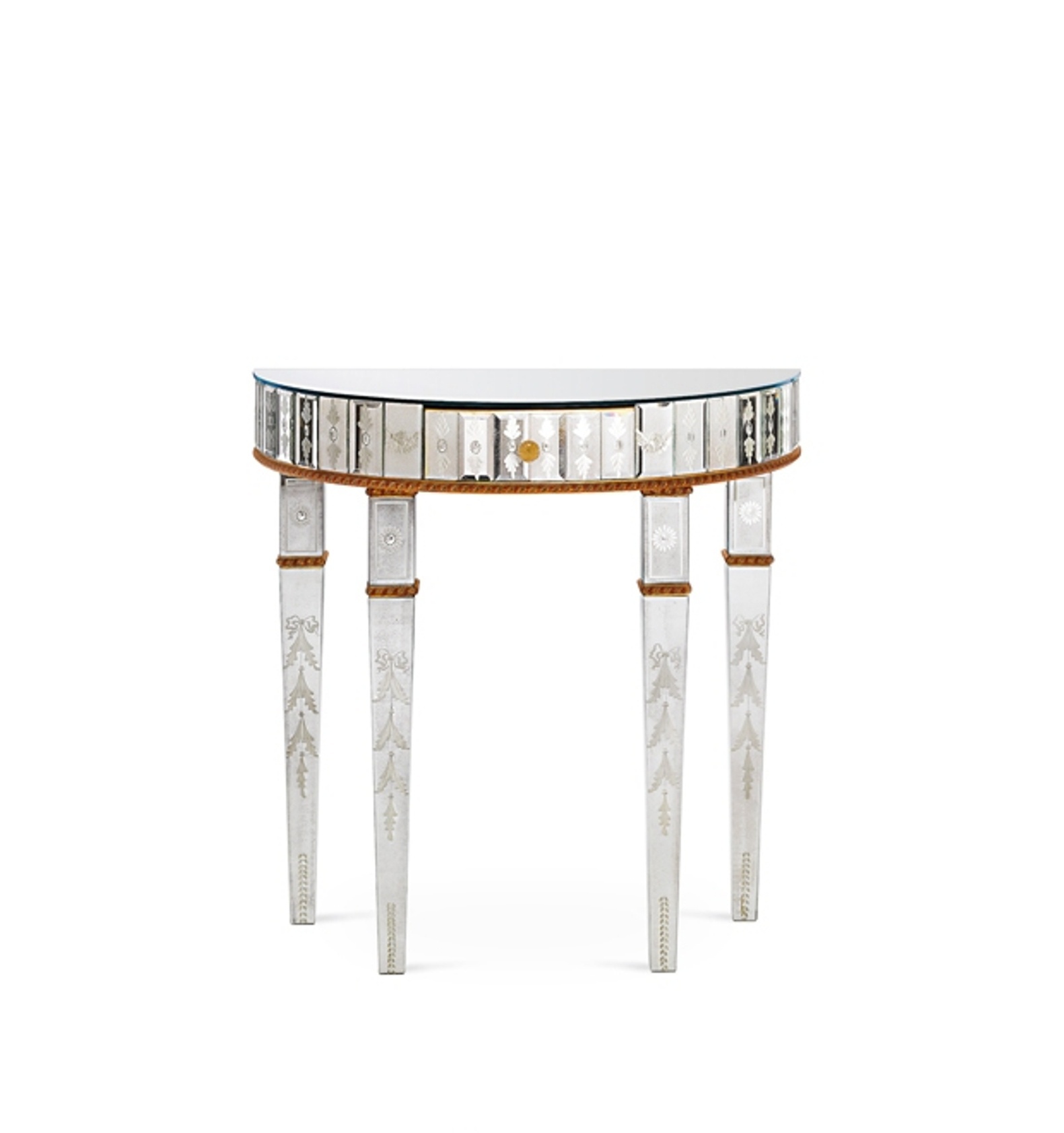 The console of the Italian manufacturer Arte Veneziano. The console on high legs, made of wood. Model in silver color equipped drawers. Made in the classic style.