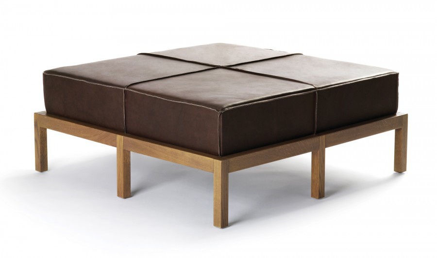 Poof Calfornia from Belgian manufacturer Mariescorner. The frame is made from solid wood natural color. Upholstery - suede decorated with handmade stitch. Filler - polyurethane foam. The model square. The perfect complement to the modern interior. Colours in stock.