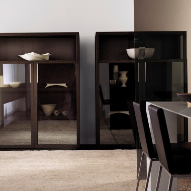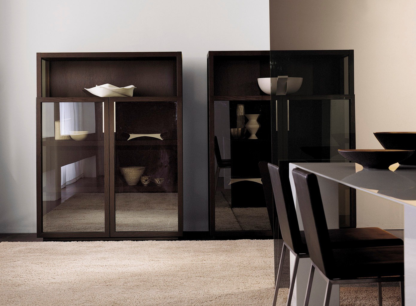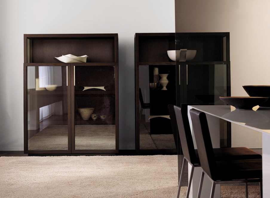 The Cabinet 500 Status from the Italian manufacturer Longhi. The model is made from solid wood and tempered bronze glass. The handle is stainless steel. Cabinet for living room or office in a modern style. Colors: brown, natural color of the wood.