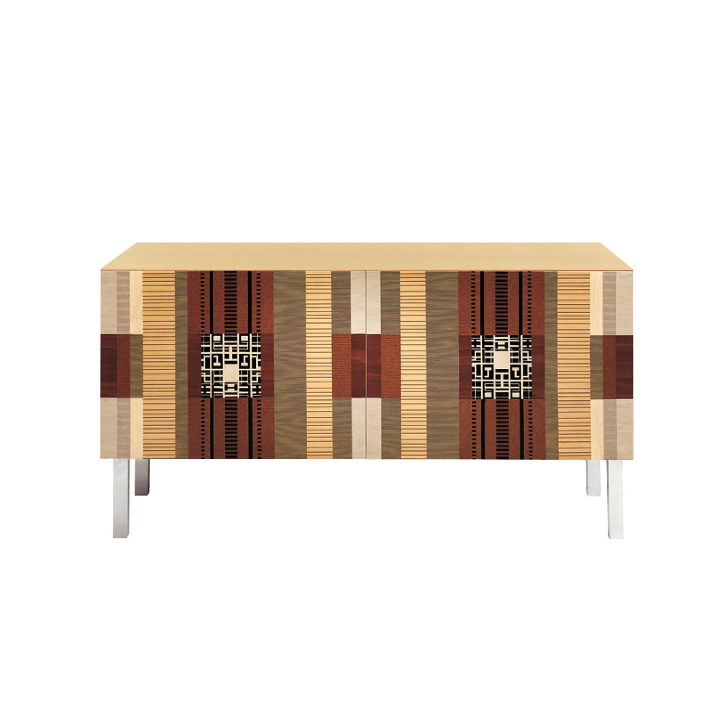 The Intarsia table from the Italian manufacturer Laurameroni. The model is made from MDF aluminium legs. Decoration slit figure on the doors in the art Deco style. Beautiful decoration modern interior. Color in stock.