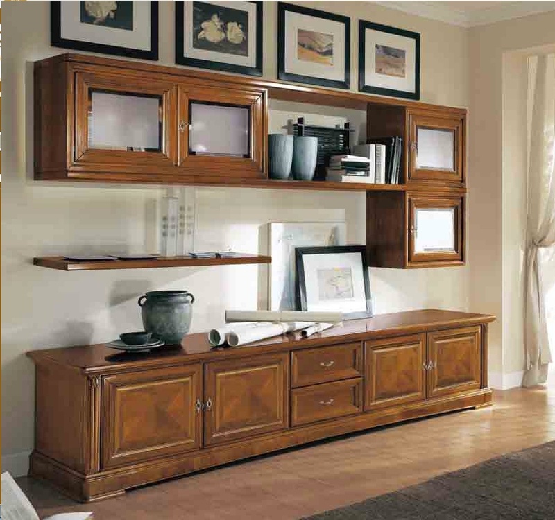 Modular system from Italian manufacturer Lubiex. Includes a range of floor and wall units. The Cabinet is made of solid wood. Fold bottom drawer deaf and the top glazed. Accessories metal. Finish to be selected from a catalog company. The model is decorated with hand-carved.