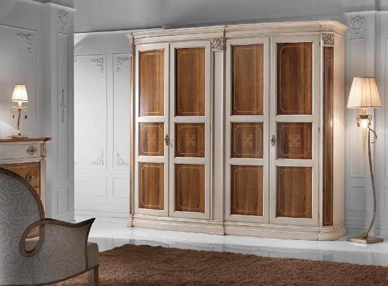 Wardrobe from the Italian manufacturer Lubiex. A model with four sections. The doors are hinged. Material - solid wood. Finish offered a choice on the company directory. Complements the design of decorative painting and hand carved.