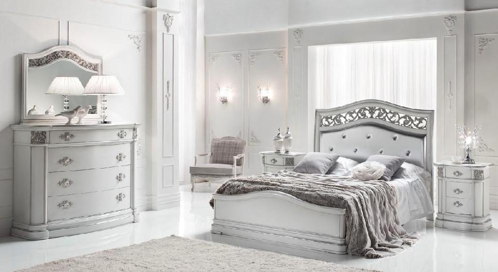 Headsets for bedrooms from Italian manufacturer Lubiex. Includes bed, bedside tables and chest of drawers. Material - solid wood. The surface is varnished in white. The headboard is covered with textiles. Accessories metal. The model perfectly fits and will decorate the interior of your home.