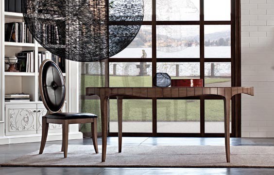 Rockfeller dining table from Italian producer Luciano Zonta. Finish - Matt lacquer with aging effect. Materials - natural wood. The model is made in art Deco style. Colours in stock.
