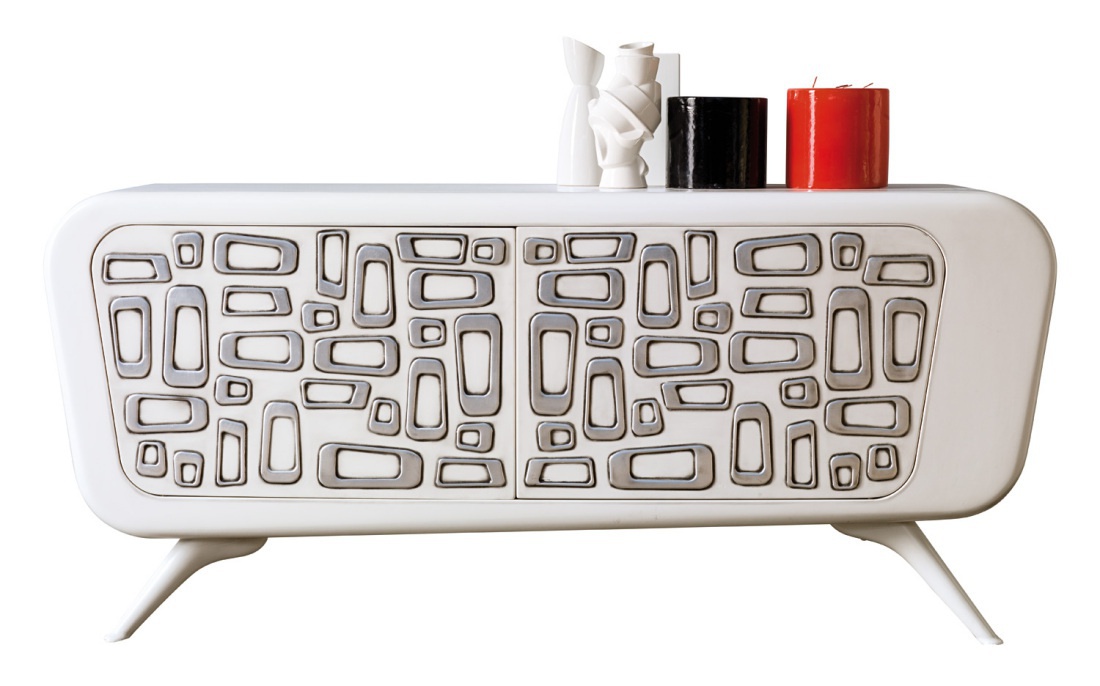 The buffet Fiftes from the Italian producer Luciano Zonta. Dresser made from solid wood. The legs are metal. The doors are ornamented. The model is made in modern style. Colours in stock.