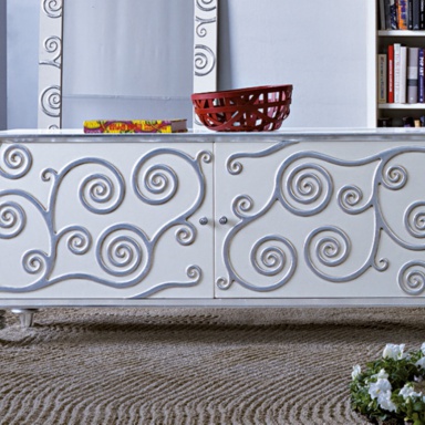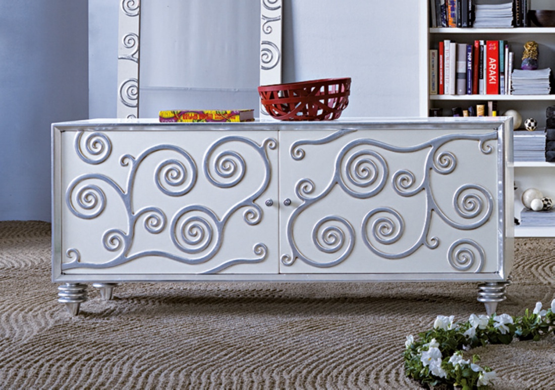 Dresser Klimt from the Italian producer Luciano Zonta. The case is natural wood. The finishing - varnish. The doors are ornamented. The model will perfectly complement the interiors in the styles of art Deco, glamour or fusion. Colours in stock.