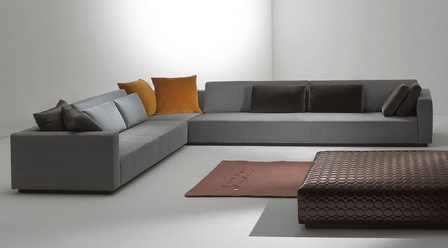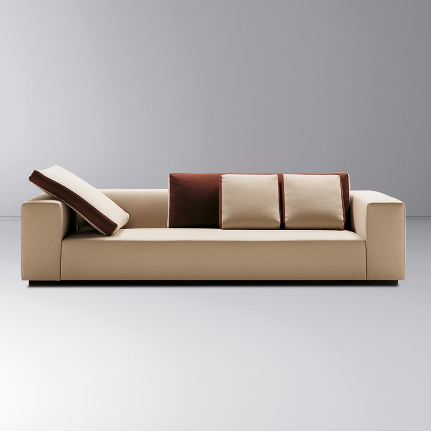 Sofa Moderato “Orchestra System” on a carrier frame made of solid wood, from the Italian manufacturer Laurameroni. The model is rendered in a modern style. Upholstered in soft leather or textiles from a range of companies. Colours in stock.