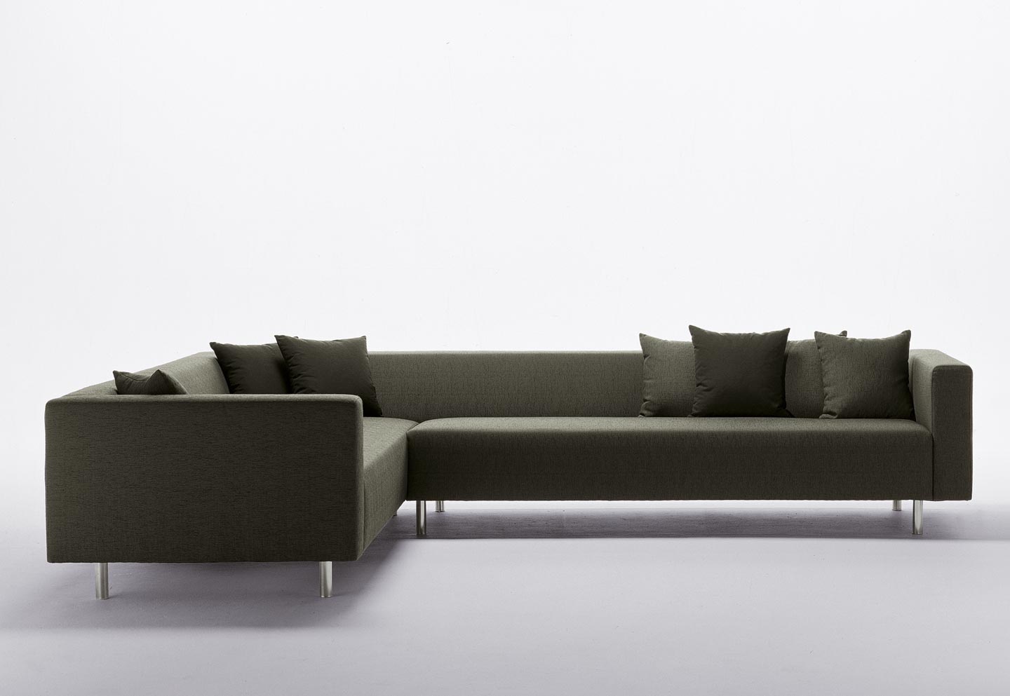 Orchestra sofa System from Italian manufacturer Laurameroni. The frame is made of wood with legs in stainless steel. Upholstery - leather or textiles from a range of campaigns. Model with low backrest and square arm rests. Designed for the living room in a modern style.
