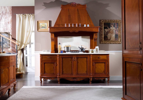 Set for the kitchen from Italian manufacturer Lubiex. The model is made in classic style. Body and legs made from solid wood. Finish a choice of glossy or matte varnish. Accessories metal. Marble white color. Is practical and compact.