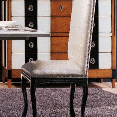The Paris chair from Italian producer Luciano Zonta. The legs are made in the form of Cabriole. Upholstery - textiles. Frame - wood beech. The model will fit in a classic interior or in the art Deco style. Colours in stock.