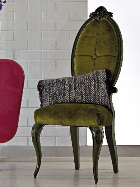 Chair with high back Rockfeller from the Italian producer Luciano Zonta. Upholstered chair made of solid beech wood. Upholstery - textiles / leather. The legs are made in the form of Cabriole. The model is made in art Deco style. Colours in stock.