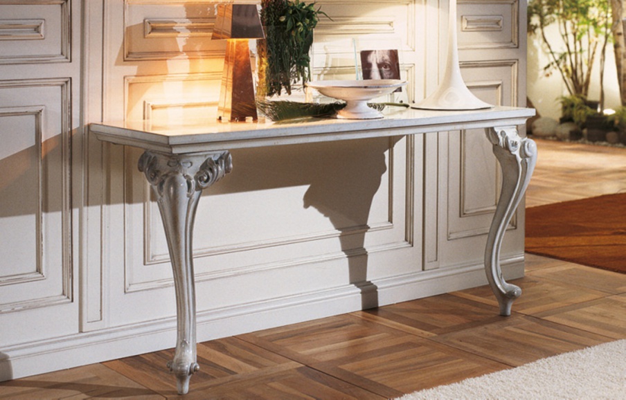Console Royal-Charm from the Italian producer Luciano Zonta. Curved legs and an architrave decorated with handmade carving. Frame, table top - natural wood. The finishing - varnish. The model is made in classic style. Colours in stock.