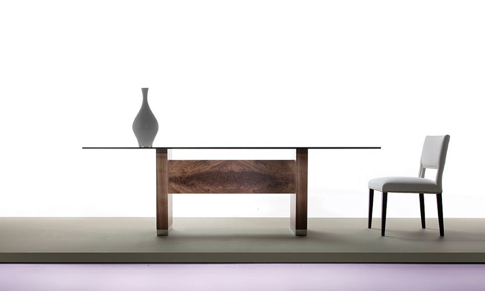 Beauty dining table from Italian manufacturer Pietro Costantini. The table-top of rectangular shape made of glass. Massive legs made of wood. The finish offers a matte or high gloss lacquer finish. The table is made in classic style. It is notable for originality of design and elegance. Colours in stock.
