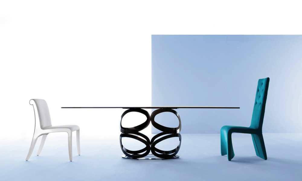 Dining table No More from the Italian manufacturer Pietro Costantini. The table-top of rectangular shape made of glass. Legs - metal. The table is made for modern interiors. It is notable for originality of design and elegance. Colours in stock.