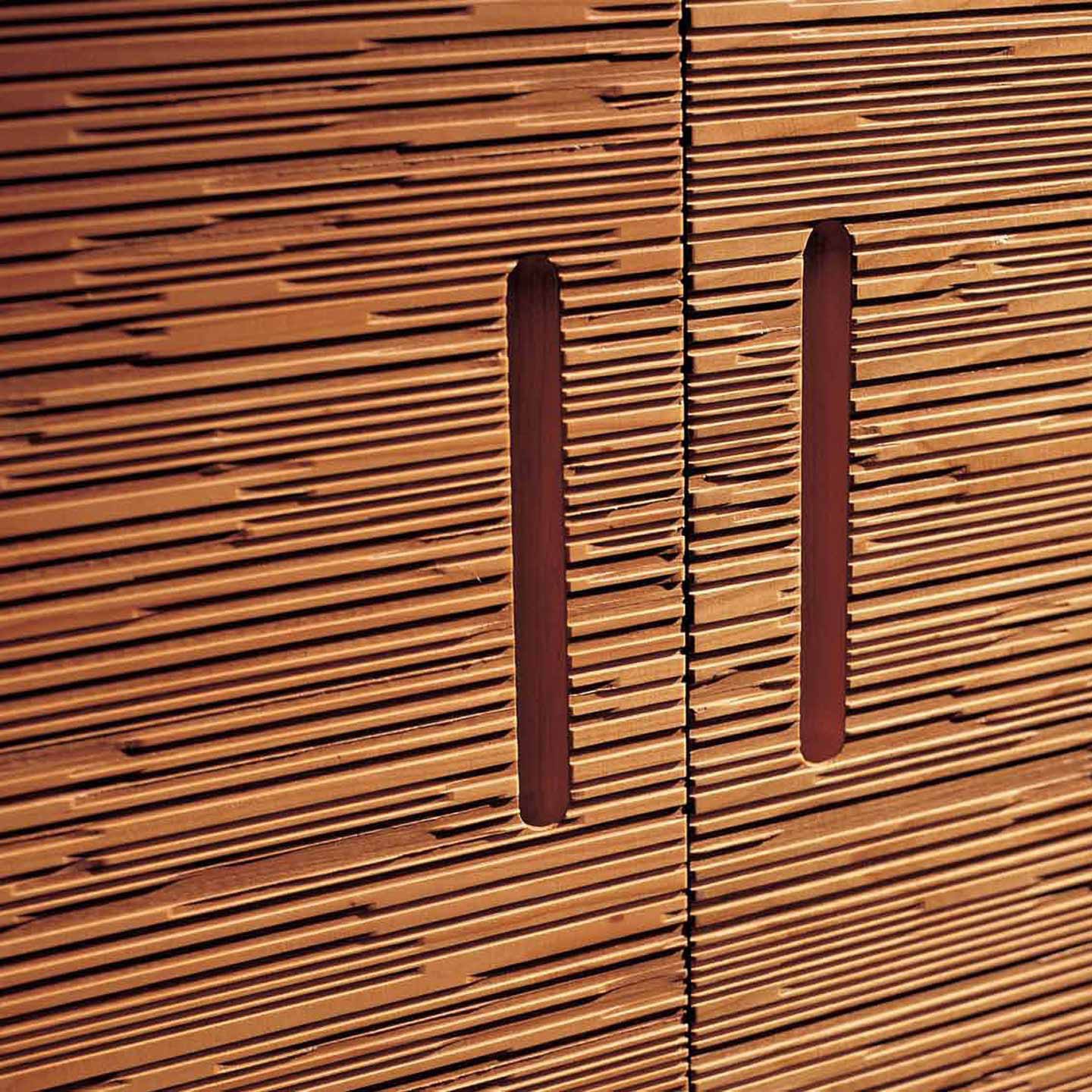 Sliding doors “Decor”from the Italian manufacturer Laurameroni. The sliding model is made of solid wood. Bilateral guide rail installed on the ceiling or embedded in the ceiling. The closing mechanism click-clack. Colours in stock.