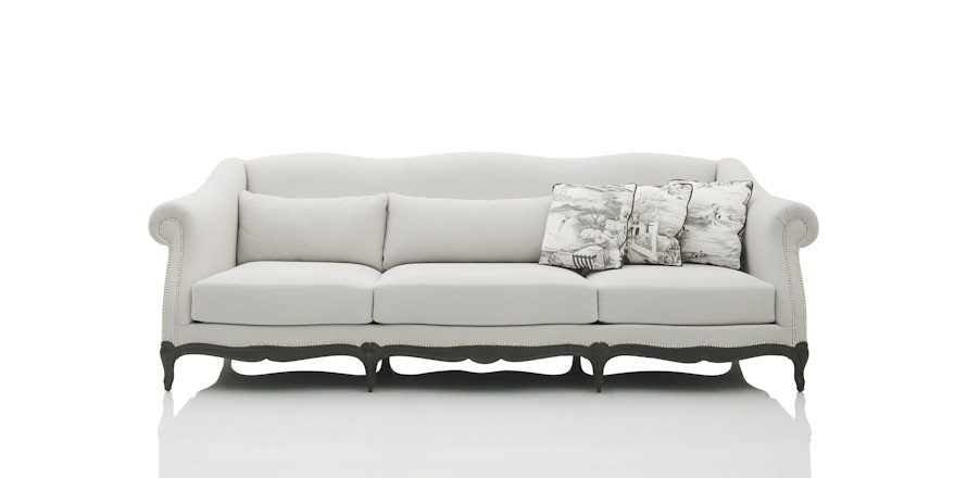 Three seater sofa Moli from Belgian producer JNL. Model low legs and rounded armrests. Material - solid wood. The surface is covered with varnish. Upholstery textile. Color option for company directory. Complement the design of decorative pillows.
