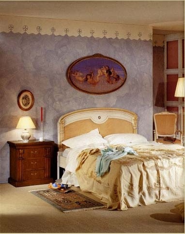 Corinto bed from Italian manufacturer Megaros. The product is made from solid wood. Model with double high headboard is designed for bedroom in classical style. Colors: white, beige, Golden.