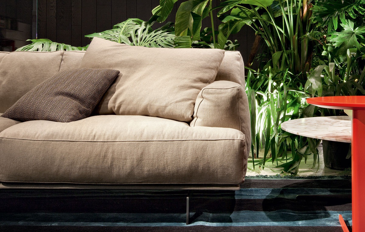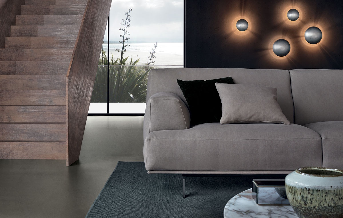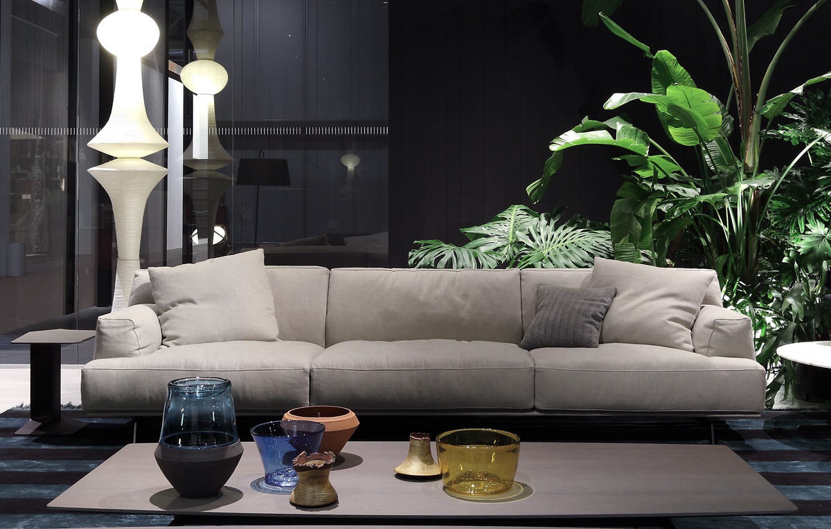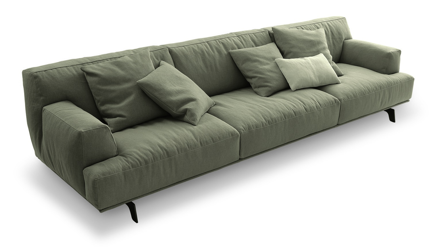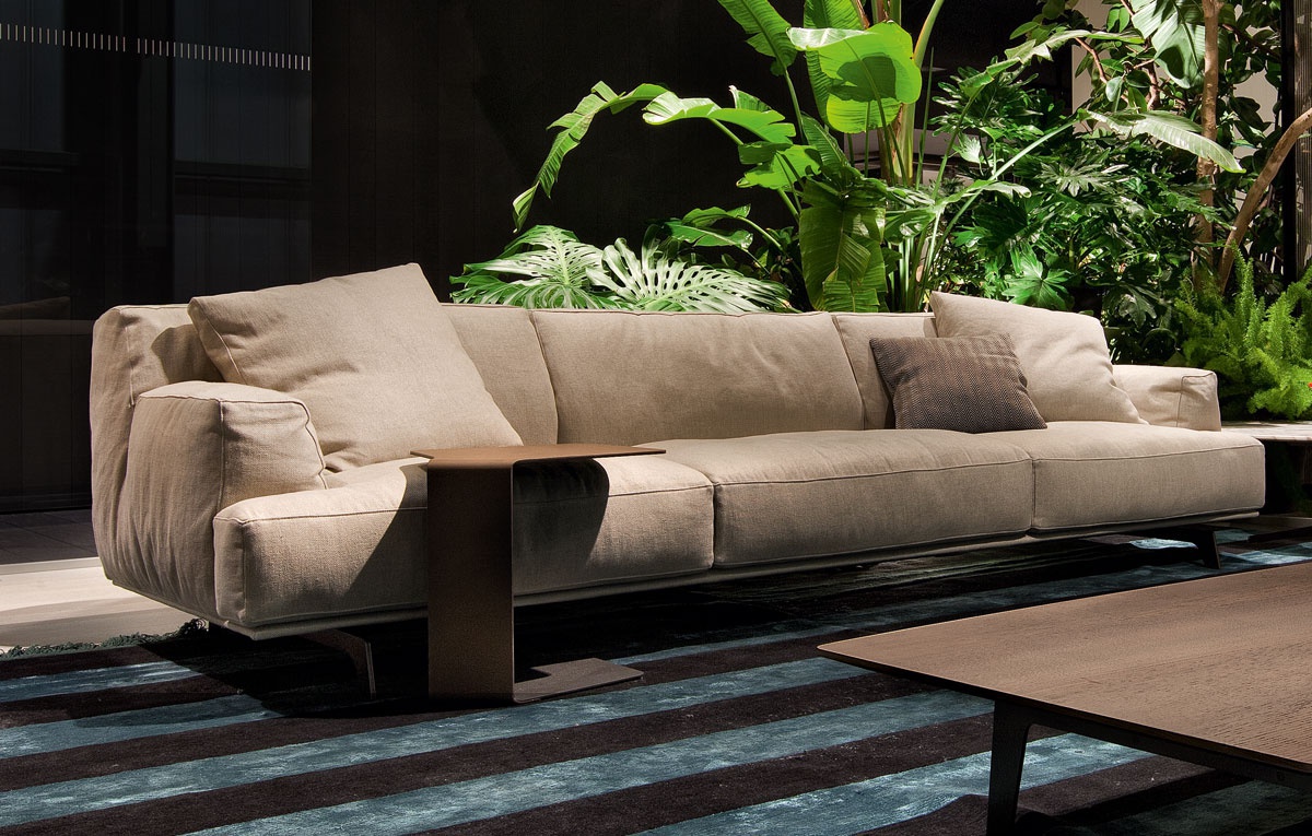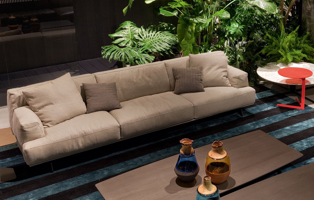 Tribeca three-seater sofa from Italian manufacturer Poliform. Model on low legs.Factory offers, in the quality of the upholstery, a choice of 7 colors of leather and fabric option 34. The inner filling is foam. Made in a modern style.