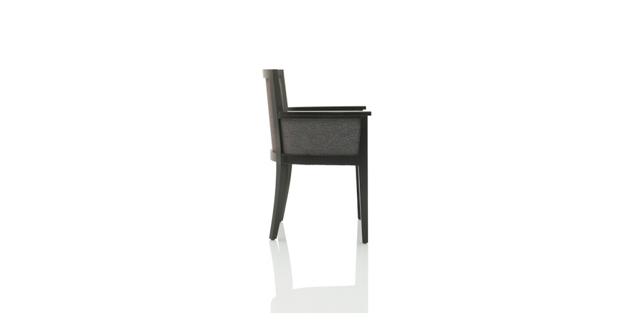 Chair Tzara Ferm from Belgian producer JNL. The model is made in a modern style. The frame and legs made from solid wood. The Matt lacquer finish is offered in black color. Seat and back covered with textiles.