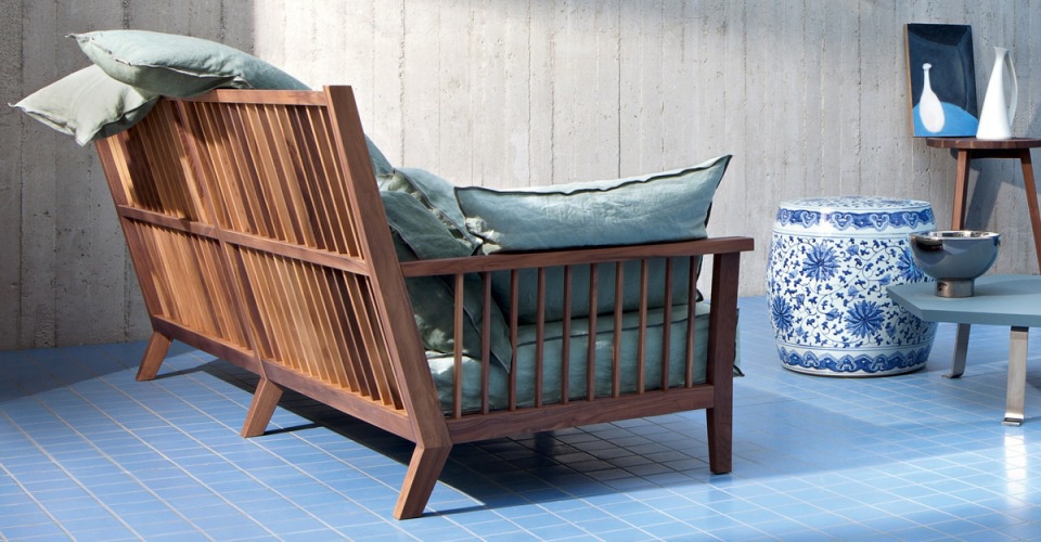 Gray 03 sofa from Italian manufacturer Gervasoni. The model is made of solid walnut or oak. Upholstery - textiles. The finishing - varnish. Design model for the modern interior. Colours in stock.
