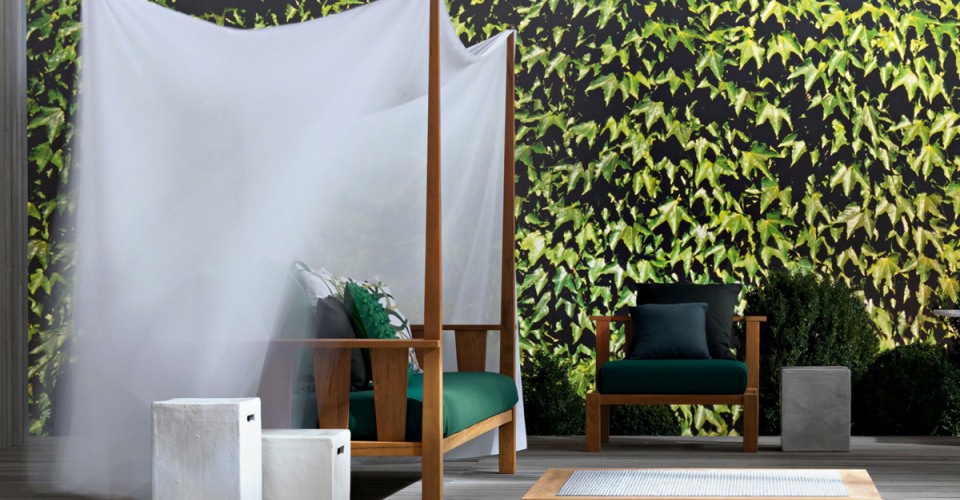 The double InOut 07 sofa from Italian manufacturer Gervasoni. The frame is made from solid teak. The model is enhanced by a thin canopy of textile. Excellent variety for garden or terrace. Colours in stock.