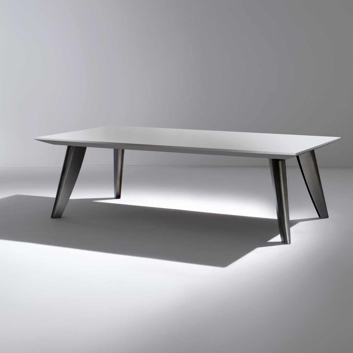 The Maxima table from the Italian manufacturer Laurameroni. The frame and legs are made of solid wood. The finish offers a glossy lacquer with a bronze tint. Are available in a variety of forms of countertops. The model is made in modern style.