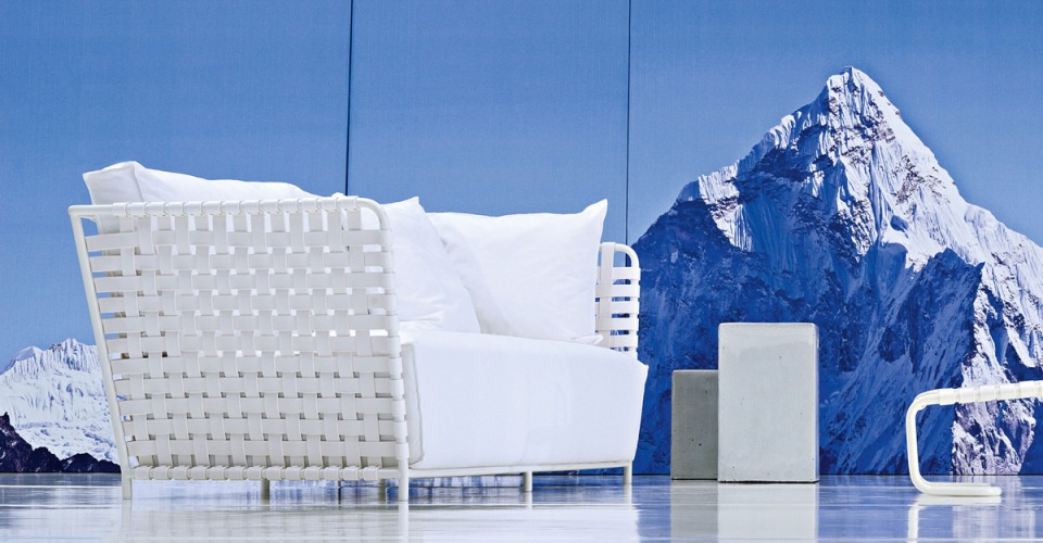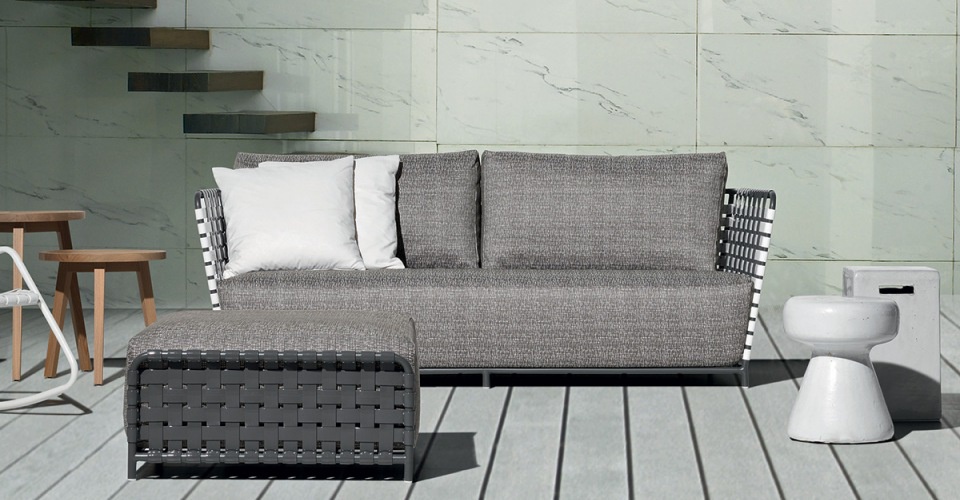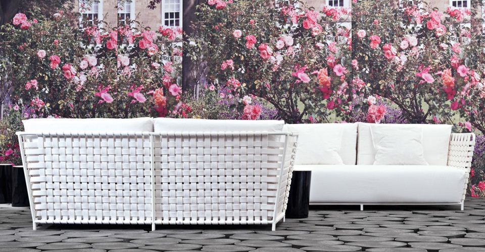 The sofa InOut 803 F, from Italian manufacturer Gervasoni. Frame - aluminum. Wicker body - PVC. Filling - polyurethane foam. Excellent variety for garden or terrace. Colours in stock.