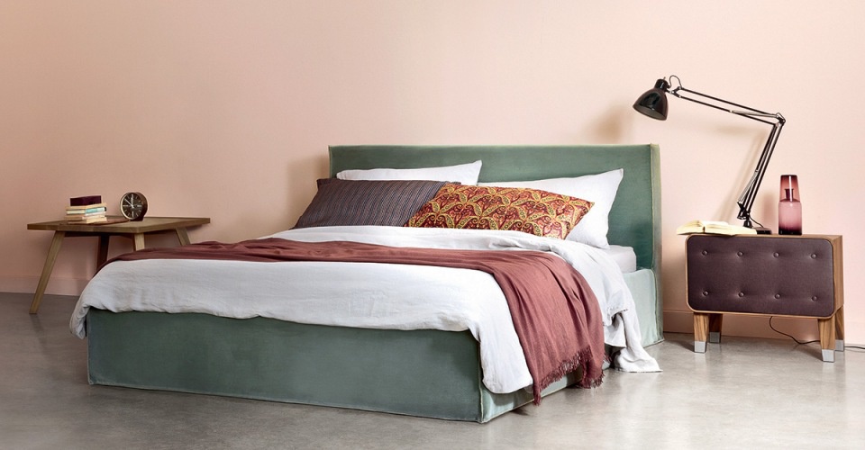 Double bed Brick 80 E, from Italian manufacturer Gervasoni. The frame is made of wood. Removable upholstery - textiles from the company portfolio. The model with upholstered headboard. Model for bedroom in a modern style. Colours in stock. The model is available for Matusow: 900x2000 mm, 1600h2000, 1800x2000 mm.