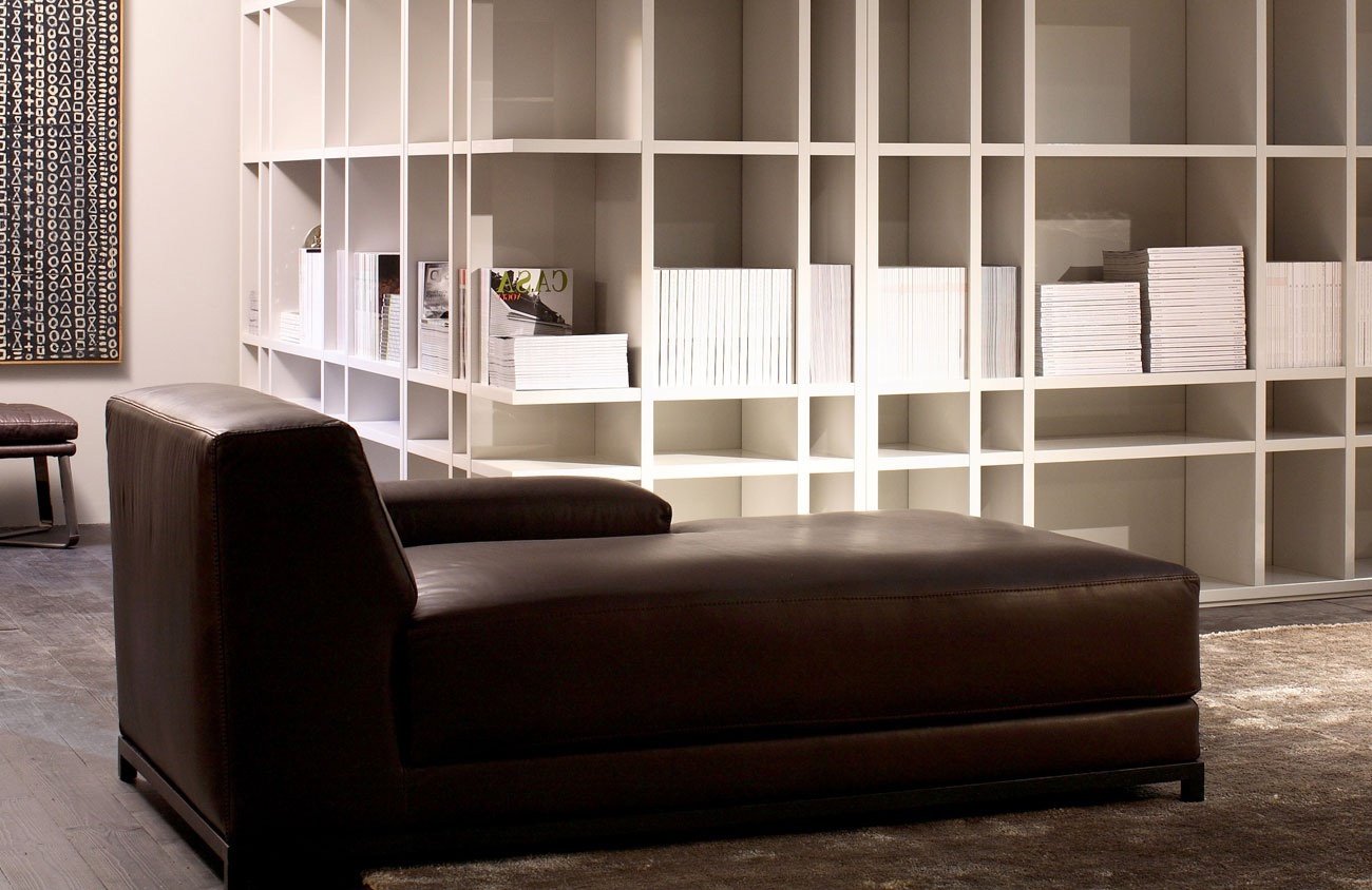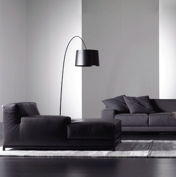 Freeman couch from the Italian manufacturer Meridiani. The frame is made from solid wood, upholstery - leather or textiles from a range of companies. Elegant model living room in modern style. Product color black.