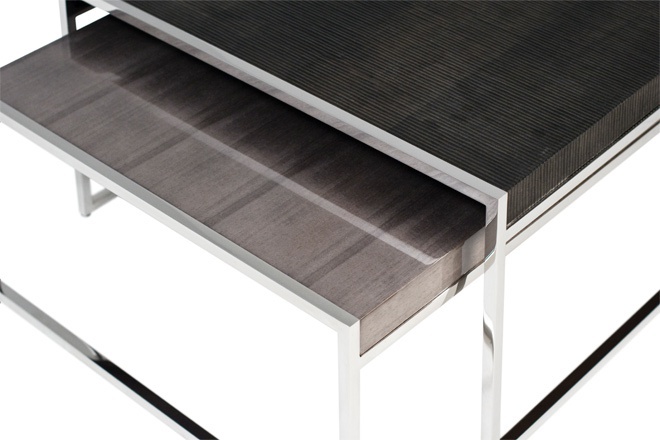Salto coffee table duo from Belgian producer JNL. The model is made in modern style. The table top is made of solid wood. The legs are metal. The surface is covered with Matt lacquer. Colours in stock.