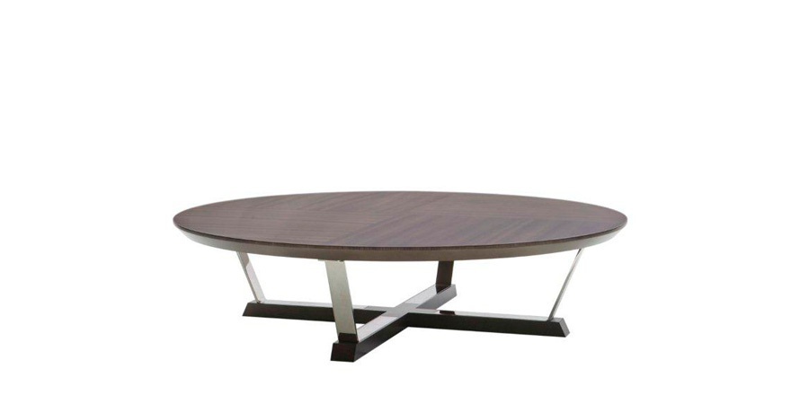 Sandra coffee table from Belgian producer JNL. Model round shape, the table top is made of solid wood. The legs are metal. The surface is covered with Matt lacquer. The style is modern. Colours in stock.